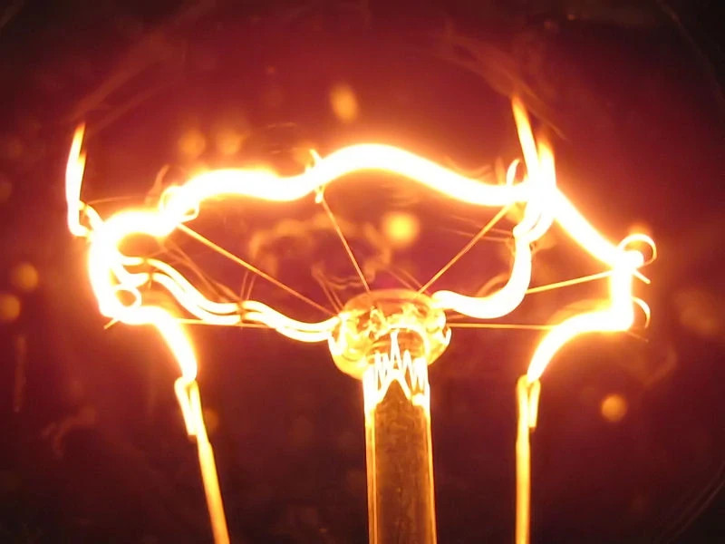 Auf Abbildung 6 sehen Sie, wie Licht entsteht. Nicht pulsierende Energie durchläuft eine Pulsationsquelle, wie eine Glühbirne. Pulsierende Atome im Glühfaden geben ihre Bewegung an die Energie weiter, die sich dann als pulsierendes Licht ausbreitet. Ähnlich entstehen auch andere Frequenzen, die zwar für das Auge unsichtbar sind, aber mit Instrumenten gemessen werden können.
