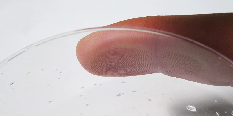 Wenn wir durch ein Glasprisma schauen, sehen wir, dass es Licht von zwei verschiedenen Flächen reflektiert. Wenn wir diese Flächen vorsichtig mit den Fingern (am besten befeuchteten) drücken, verschwindet die Lichtreflexion an der Berührungsstelle. Sobald wir die Finger entfernen, erscheint die Reflexion wieder. Dies deutet darauf hin, dass keine dauerhafte Verformung des Glases erfolgt, die den Lichtreflexions- oder Brechungseffekt beeinträchtigen könnte. Dieses einfache Experiment zeigt, wie sich Energie um Körper herum verdichtet und wie wir sie auch durch Berührung der Finger untersuchen können.